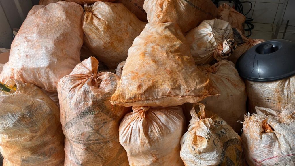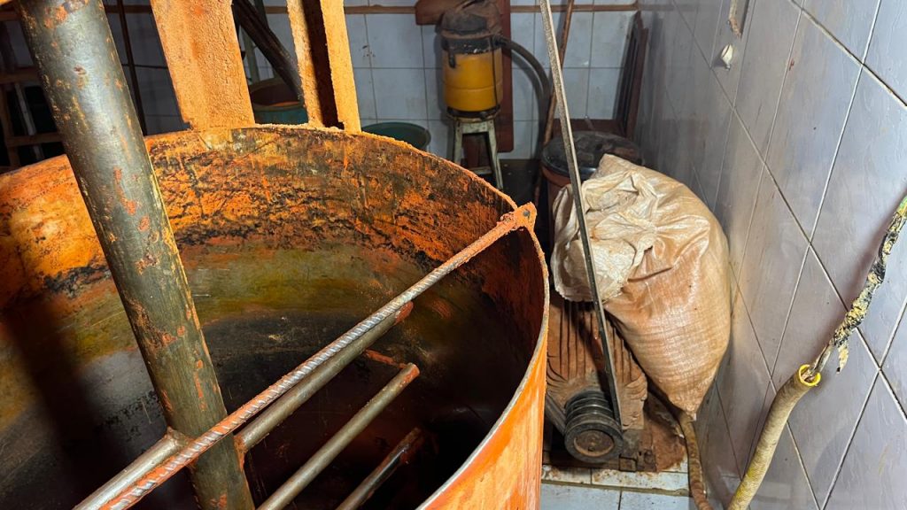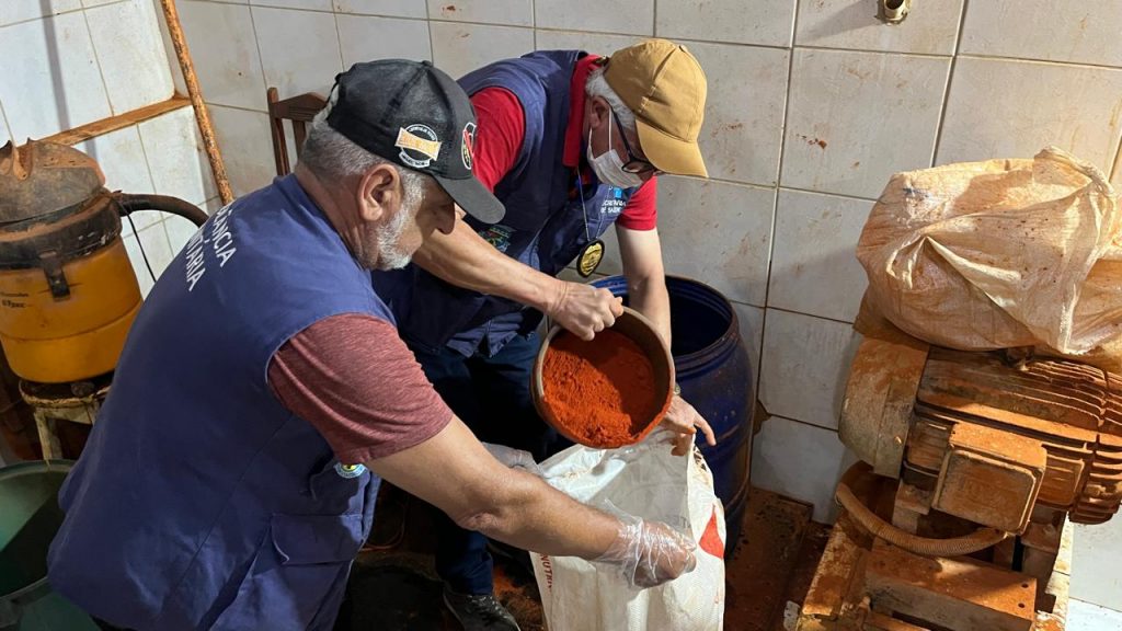 Entre os insumos utilizados para a fabricação do corante estavam milho, óleo de cozinha e urucum, manipulados em ambiente insalubre, onde foram identificados dejetos de insetos, excrementos de ratos e grande quantidade de lixo acumulado.