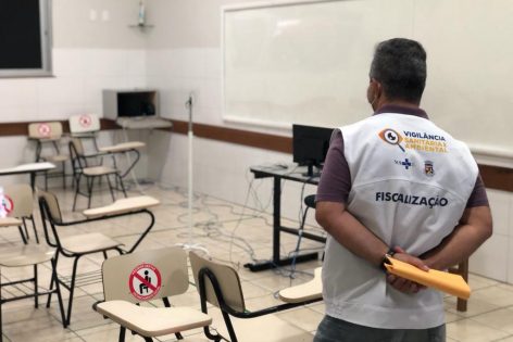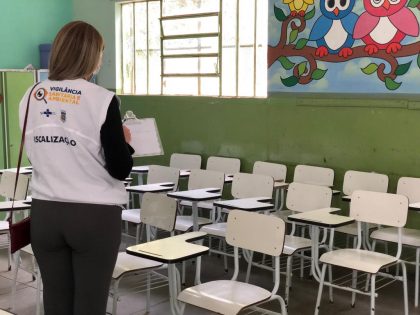 Ao longo deste mês de julho, a Vigilância Sanitária vai continuar realizando o roteiro de visitas às escolas municipais e também inspecionando as escolas privadas, a fim de que as medidas sanitárias sejam atendidas para proporcionar que a volta às aulas seja feita de forma segura.