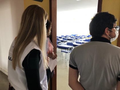 Como parte do plano de início das aulas semipresenciais, previstas para o mês de agosto em Vitória da Conquista, a Vigilância Sanitária (Visa) da Secretaria Municipal de Saúde (SMS), vem realizando visitas de inspeção às escolas particulares e municipais do município para verificar as adequações dos espaços físicos e cumprimento dos protocolos sanitários para o retorno dos alunos às salas de aula. A vistoria observa as condições das salas de aulas, espaços de convivência e banheiros, além da adoção das medidas sanitárias, entre outros pontos.
