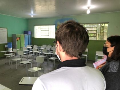 Vistoria das escolas municipais – Ao todo, o município selecionou 24 escolas, 17 na zona urbana e sete na zona rural, que estão se preparando para o retorno, dos alunos do 2º, 5º e 9º anos, que terão aulas de forma híbrida. Nesta quinta-feira (15), as escolas municipais Zica Pedral e Tenente Cel. Manoel Joaquim Pinto Paca receberam a visita da equipe de inspetores que apontaram algumas necessidades de mudança e apresentarão o relatório da vistoria aos coordenadores das escolas.