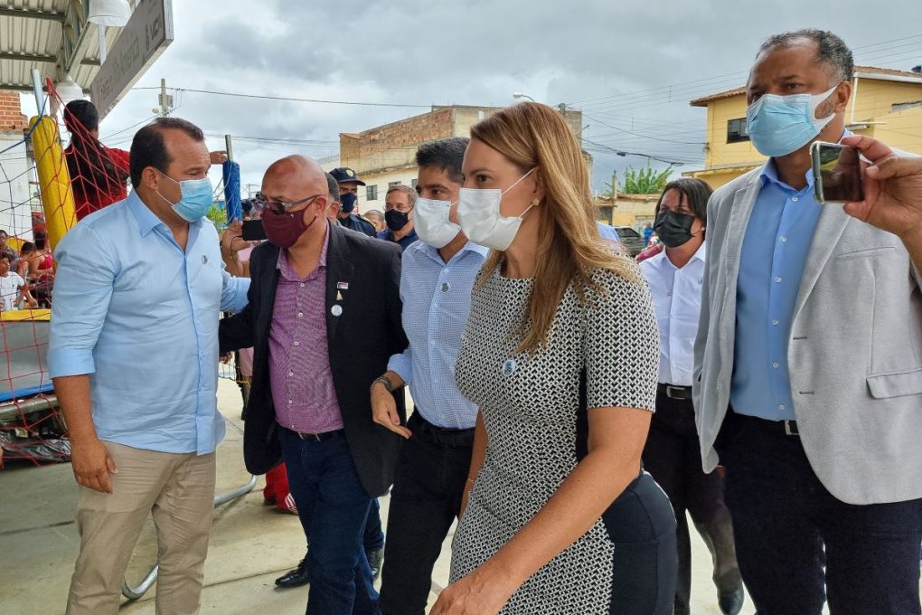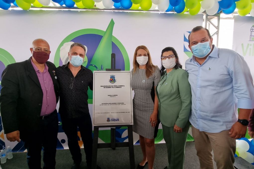 Chovia quando a prefeita Sheila Lemos e comitiva chegaram para entregar a feira coberta do Vila América, no início da tarde desta terça-feira, 9 de novembro, dia em que Vitória da Conquista comemora 181 anos de emancipação. No local, uma pequena multidão, formada por moradores do loteamento e do entorno, aplaudia, depois de esperar cerca de uma hora.