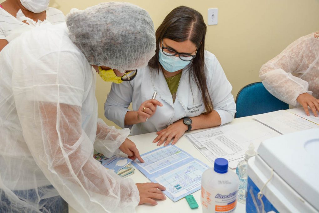 Vacinação contra a Covid no Centro – Além da vacinação nos conjuntos residenciais, neste sábado a SMS também realizou vacinação na Secretaria Municipal de Serviços Públicos (Sesep), no centro da cidade. Foram disponibilizadas para a população 1.300 doses de imunizantes contra a Covid-19 e a gripe Influenza.