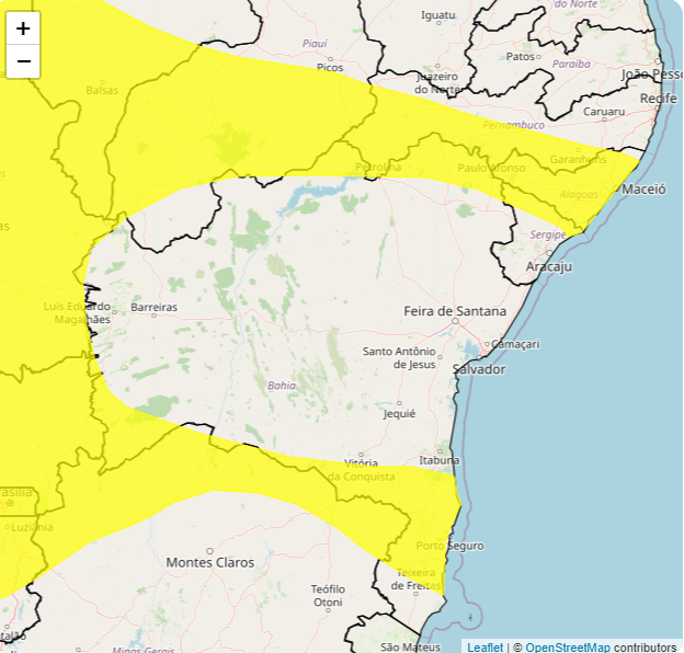 Vitória da Conquista permanece com previsão de pancadas de chuvas em todo o município. O alerta amarelo com grau de severidade “perigo potencial” vai até as 10h de amanhã (14), de acordo com o Instituto Nacional de Meteorologia (Inmet), órgão ligado ao Ministério da Agricultura e Pecuária.
