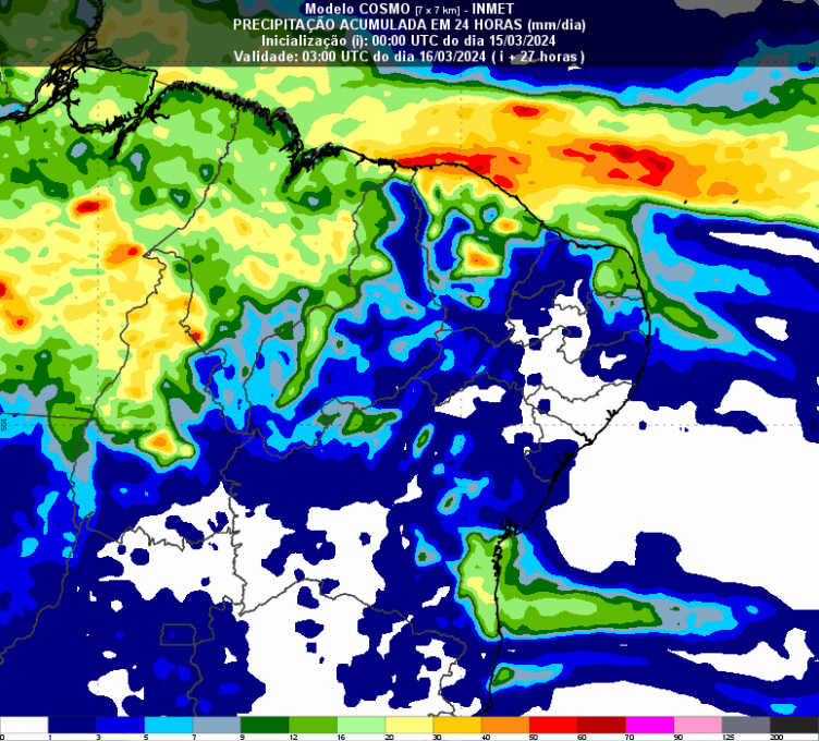 Vitória da Conquista permanece com previsão de pancadas de chuvas. De acordo com o Instituto Nacional de Meteorologia (Inmet), a previsão é que chova até 5 mm, por isso o município não aparece na faixa que indica chuvas intensas.
