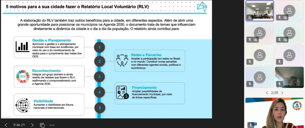 “O RLV vai ajudar as cidades a identificarem tanto as suas virtudes quanto os desafios com relação aos ODS, o que ajuda a definir as prioridades que serão abordadas com políticas públicas, parcerias, entre outros. Assim, as cidades terão um olhar mais integrado para o planejamento e gestão, possibilidades de estabelecer diálogos com outros municípios, e também trazer visibilidade pra essas cidades, já que poucas aderem seriamente à Agenda”.