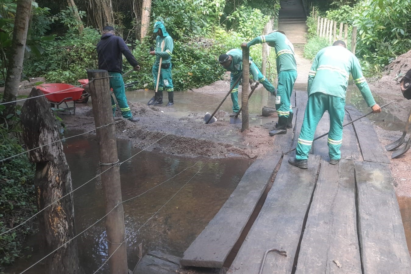 Além de seguir com as rondas pelo perímetro urbano e remoção de galhos nas vias e praças, a Secretaria Municipal de Meio Ambiente (Semma) está com uma frente de trabalho na Reserva do Poço Escuro. É realizada a manutenção geral, limpeza e desobstrução das passagens e trilhas, que estavam danificadas devido às chuvas.