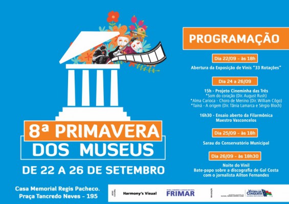 A Prefeitura de Vitória da Conquista, por meio da Secretaria Municipal de Cultura, Turismo, Esporte e Lazer, em parceria com a União, realiza a 8ª Primavera dos Museus. A Casa Memorial Régis Pacheco receberá o evento que acontece de 22 a 26 de setembro em todo o país, com o tema “museu criativo”.
