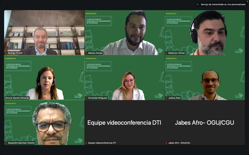 A Secretaria Municipal de Transparência, Controle e Prevenção à Corrupção participou, nessa quarta-feira (9), do “Webinário – A LGPD Aplicada a Manifestações de Ouvidoria”, promovido pela Ouvidoria-Geral da União (OGU), em parceria com a Prefeitura de Vitória da Conquista, que ajudou na organização do evento. É que o Município é membro da Câmara Técnica de Aplicação da Lei Geral de Proteção de Dados (LGPD), vinculada à Rede Nacional de Ouvidorias (Renouv).