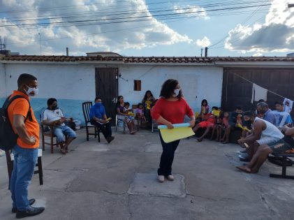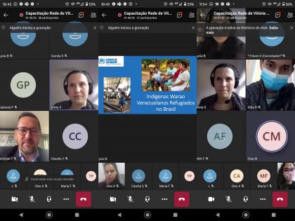 Capacitações- Em dezembro de 2020, a Semdes participou de capacitação, sobre populações indígenas refugiadas, oferecida pelo Ministério da Cidadania, Agência ONU para Refugiados (ACNUR) e a Organização Internacional para Migrações (OIM). Com as novas informações, a Semdes se organizou e nomeou uma técnica de referência para acompanhamento dessas famílias, a assistente Social Tainá Alves, com a missão de articular as intervenções e monitoramento de demandas. “Nosso grande desafio desde o inicio foi estabelecer vínculo, pois sofríamos com a barreira da língua, que não é a espanhola e sim o dialeto do povo warao. Com o tempo nos adaptamos a isso e já conseguimos estabelecer diálogo”, conta Tainá.