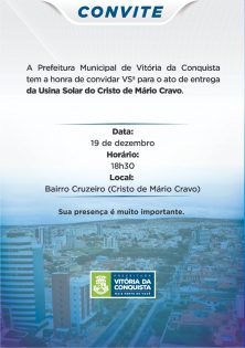 O compromisso do Governo Municipal em fazer de Vitória da Conquista uma cidade para o futuro já está mostrando grandes resultados. Um deles será oficialmente entregue para a população nesta quarta-feira (19). Trata-se de uma Usina de Geração de Energia Solar para iluminar um dos cartões postais mais famosos da cidade: o Cristo de Mário Cravo.