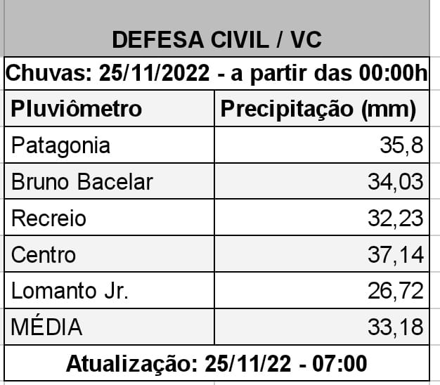 Desde as primeiras horas da manhã, a equipe da Coordenação Municipal de Proteção e Defesa Civil (Compdec) percorreu locais considerados “áreas de risco”, tanto na zona rural quanto na urbana, a fim de monitorar a situação e tomar providências, caso seja necessário. Ao longo do dia, a Prefeitura fará atualizações sobre a situação da chuva no município, incluindo o volume pluviométrico e eventuais consequências da precipitação.