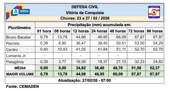 Conteúdo de Prefeitura Municipal de Vitória da Conquista – PMVC disponível em https://www.pmvc.ba.gov.br/vitoria-da-conquista-registra-precipitacao-media-de-52-mm-em-quatro-dias-e-segue-com-acoes-preventivas/whatsapp-image-2026-02-27-at-07-49-31-1/ acessado em 15/04/2026 04:16:49