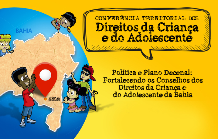 Nos dias 29 e 30 de setembro (terça e quarta-feira), Vitória da Conquista sediará a III Conferência Territorial dos Direitos da Criança e do Adolescente. Este ano, o tema a ser tratado será “Política e Plano Decenal dos Direitos Humanos da Criança e do Adolescente: Fortalecendo os Conselhos dos Direitos da Criança e do Adolescente da Bahia”.