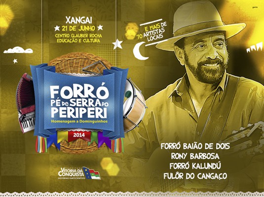 Neste sábado, 21, quem se apresenta na programação do Forró Pé de Serra do Periperi, é o cantor e compositor Xangai. Na ocasião, além do menestrel, sobem ao palco principal a banda Forró Baião de Dois, Rony Barbosa, Forró Kalundú e Fulôr do Cangaço. A programação acontece no Centro Glauber Rocha – Educação e Cultura, a partir das 19h30.